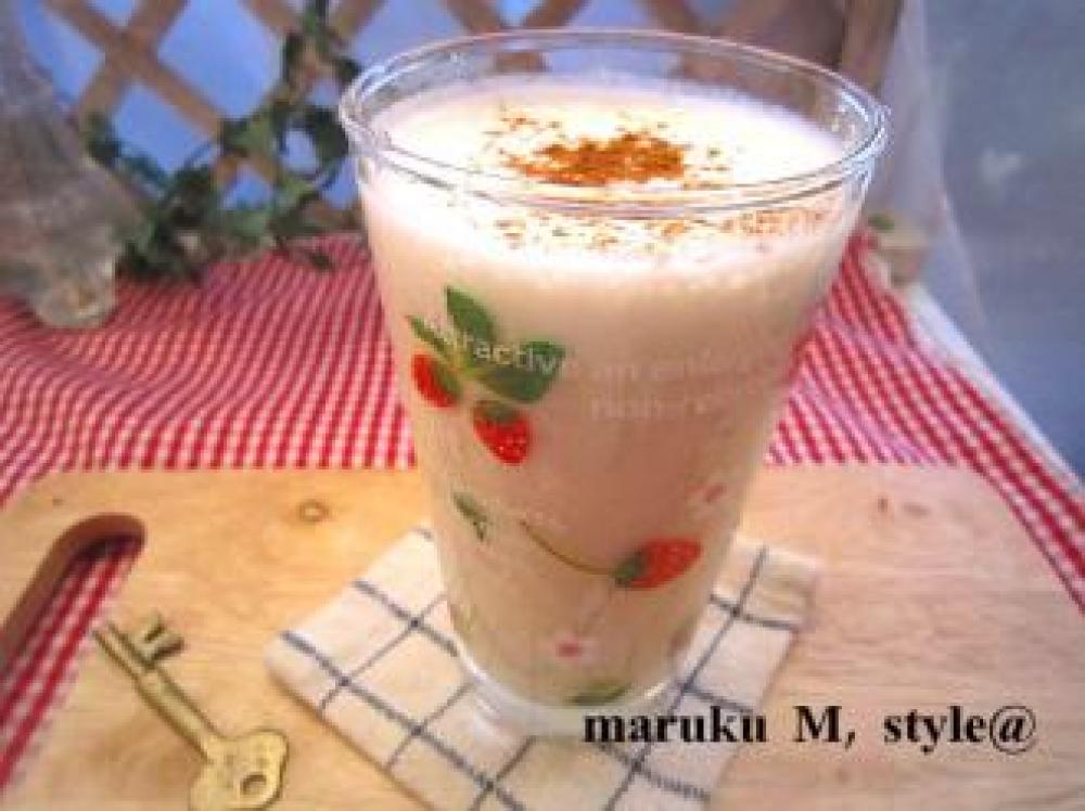 ![]() ドリンクは豆乳バナナ。バナナ100gに無調整豆乳150ccとシナモンをミキサーにかけたもの!上からもシナモンタップリ!