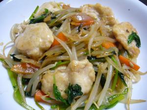 野菜類がしんなりし、マヨネーズが透明になってきたら、ウエイパーを加えて、全体になじませたらOK。