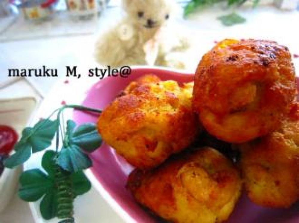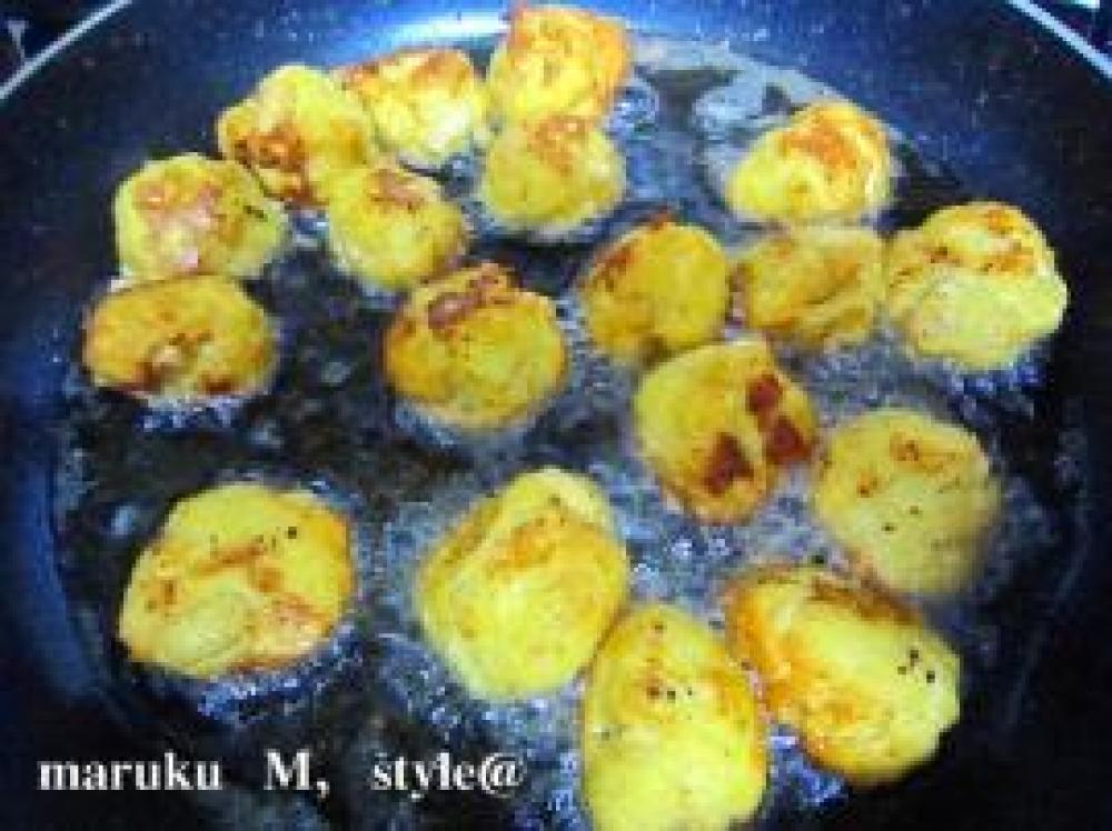 ![]() 油でカラット素揚げをします。私は油の温度が上がる間に手でポンポンと丸めていきます。