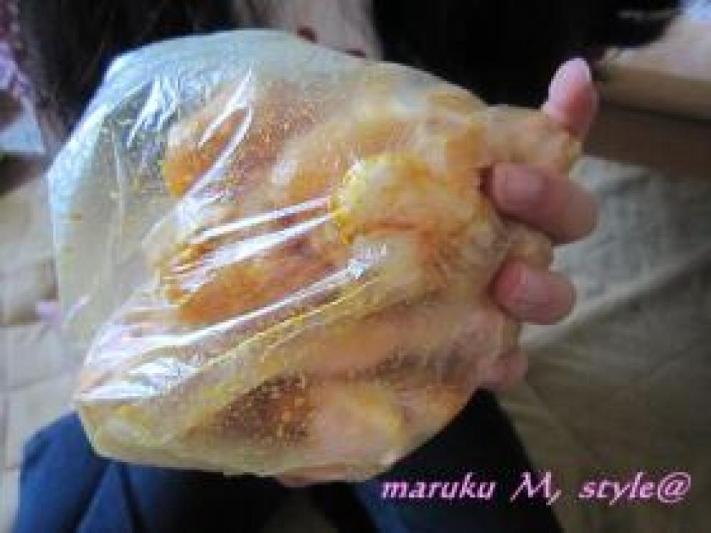 ![]() ナイロン袋の中に鳥と塩、こしょう、ケチャップ、ニンニク、生姜を入れてよく揉み下味をつけます。