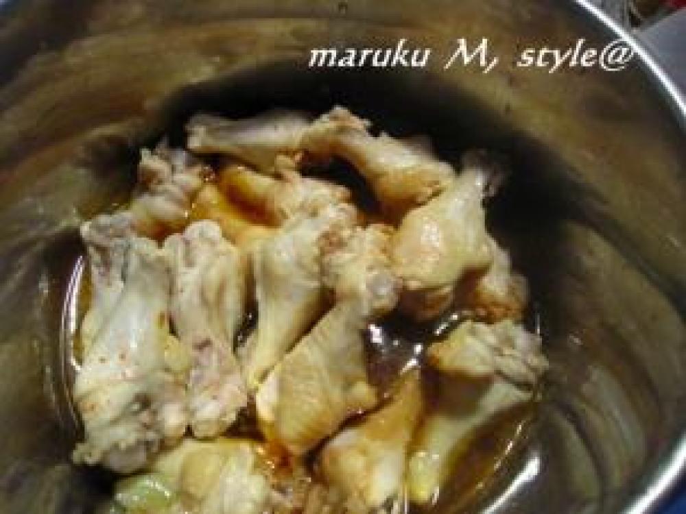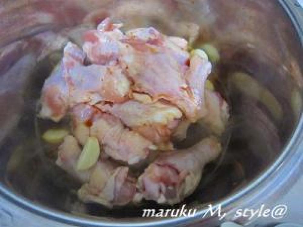 ![]() 圧力がかかれば、弱火にして7分!圧力が下がれば、蓋を開けたら火は通ってますがまだ美味しそうな色がついていません。