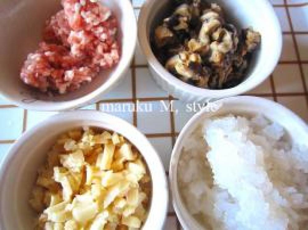 ![]() 残りの調味料も全部材料をボールに入れてよくこねます。