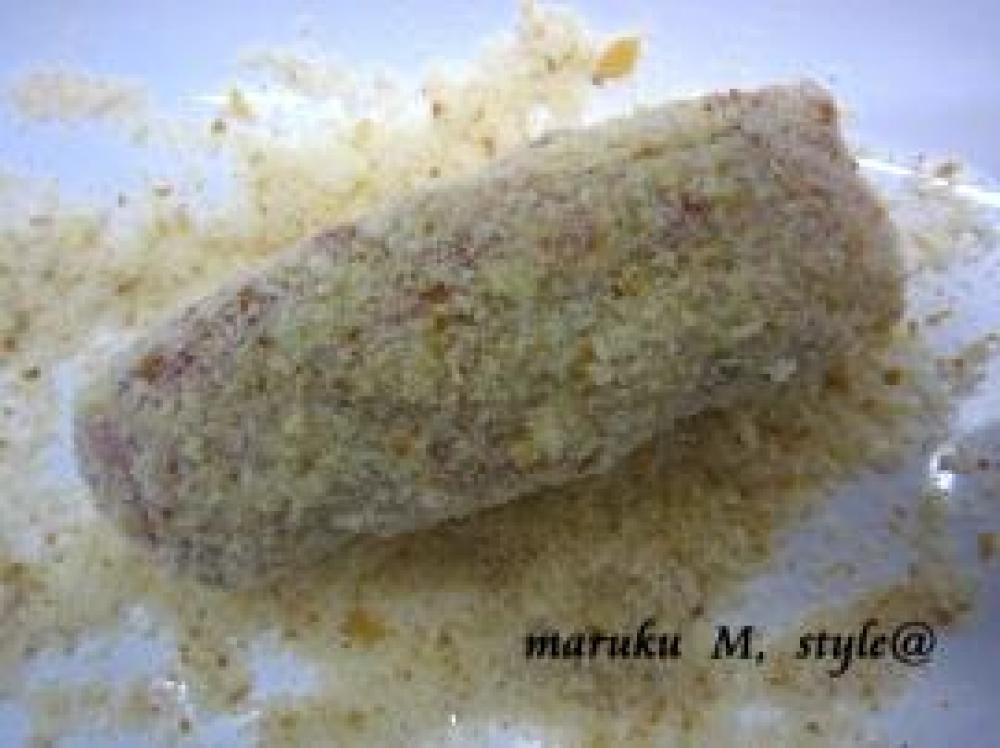 ![]() それに、1小麦粉、2卵、3パン粉の順番につけますが、うちは市販のてんぷら粉をつけてパン粉の2回工程です。