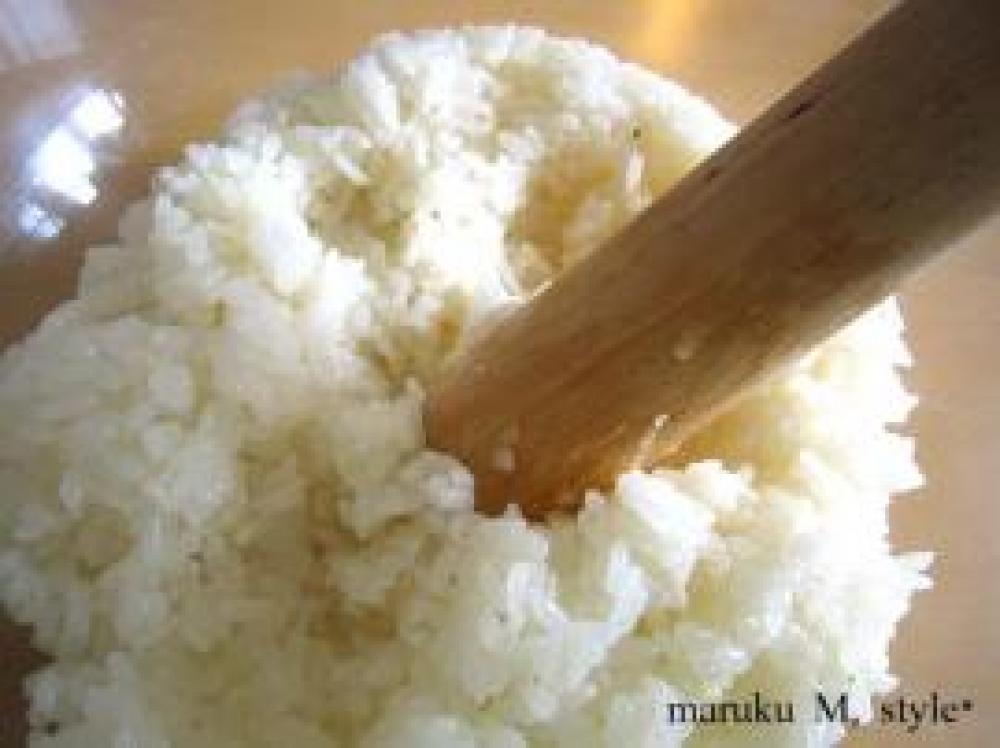 適宜にもち米を分けて(今回は40g~50gでしました) 13個出来ました!丸くするのは手に塩水を付けて丸めます。
