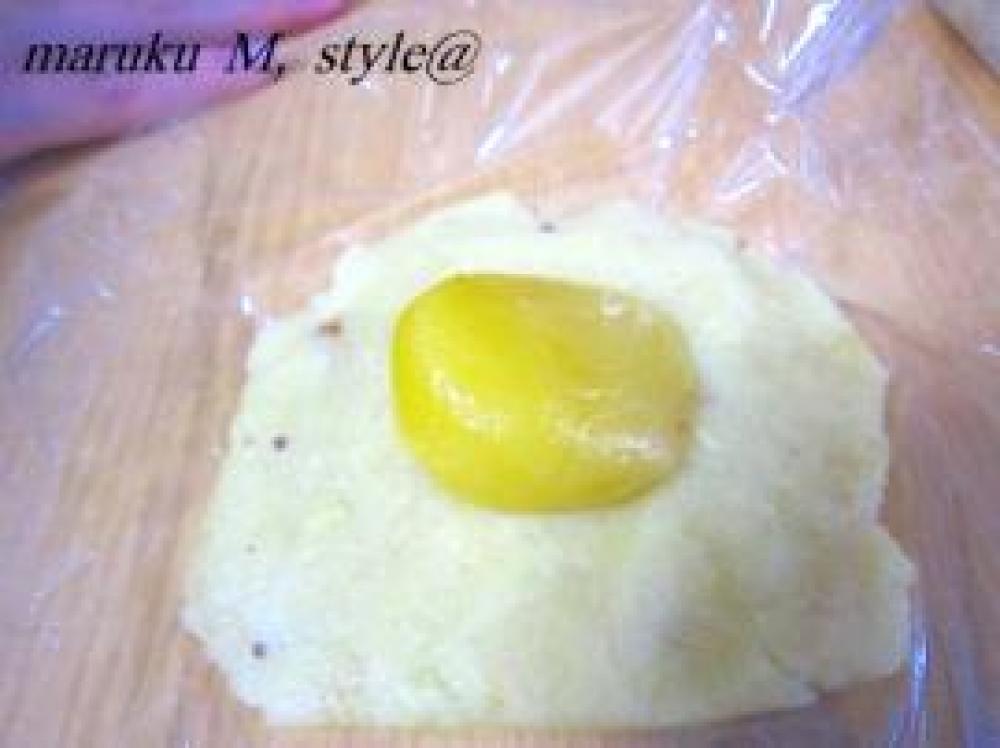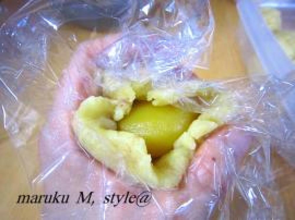 ![]() 真ん中に栗の甘露煮の半分を入れます!もちろん1個入れても!(包みにくくなるのでその場合はさつま芋の生地を多くとってね)