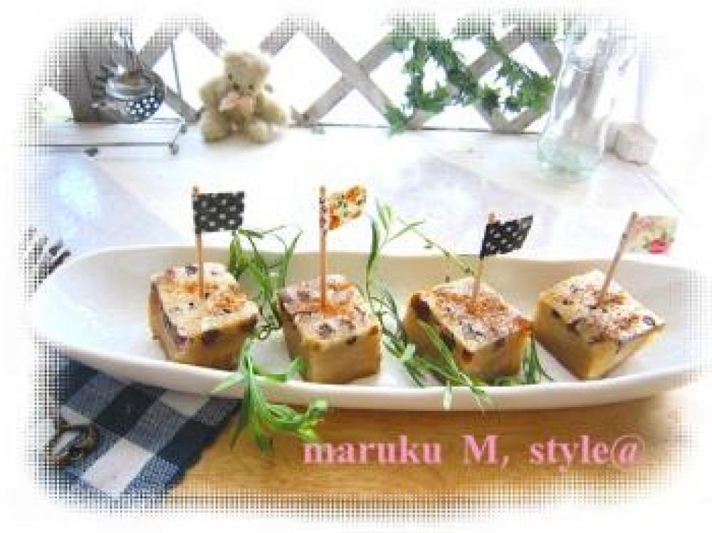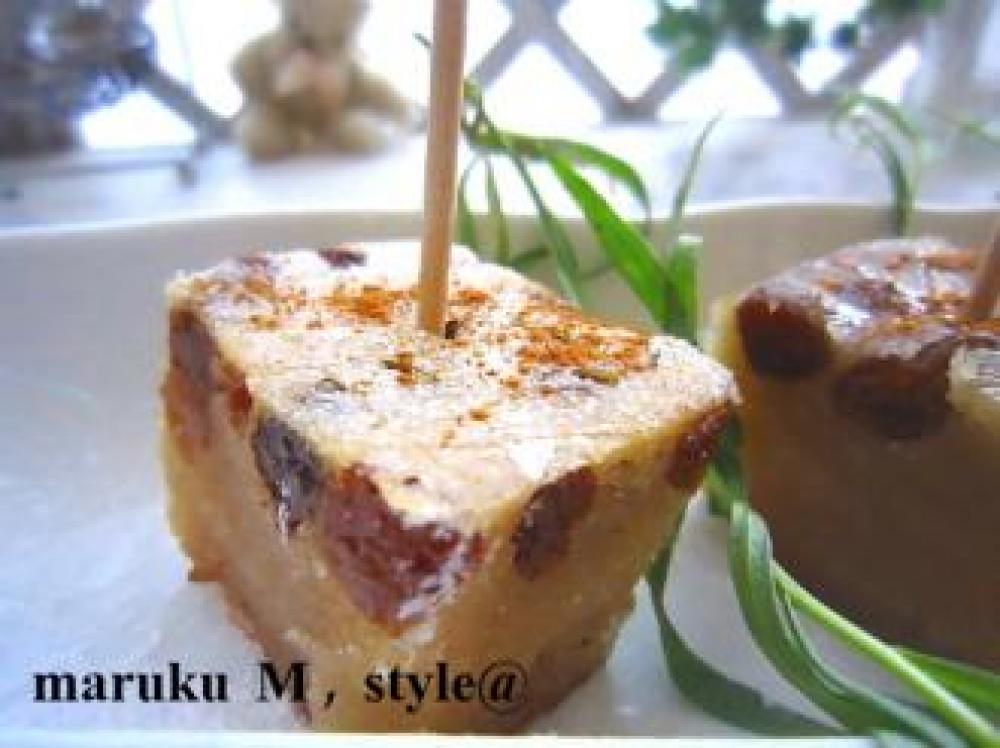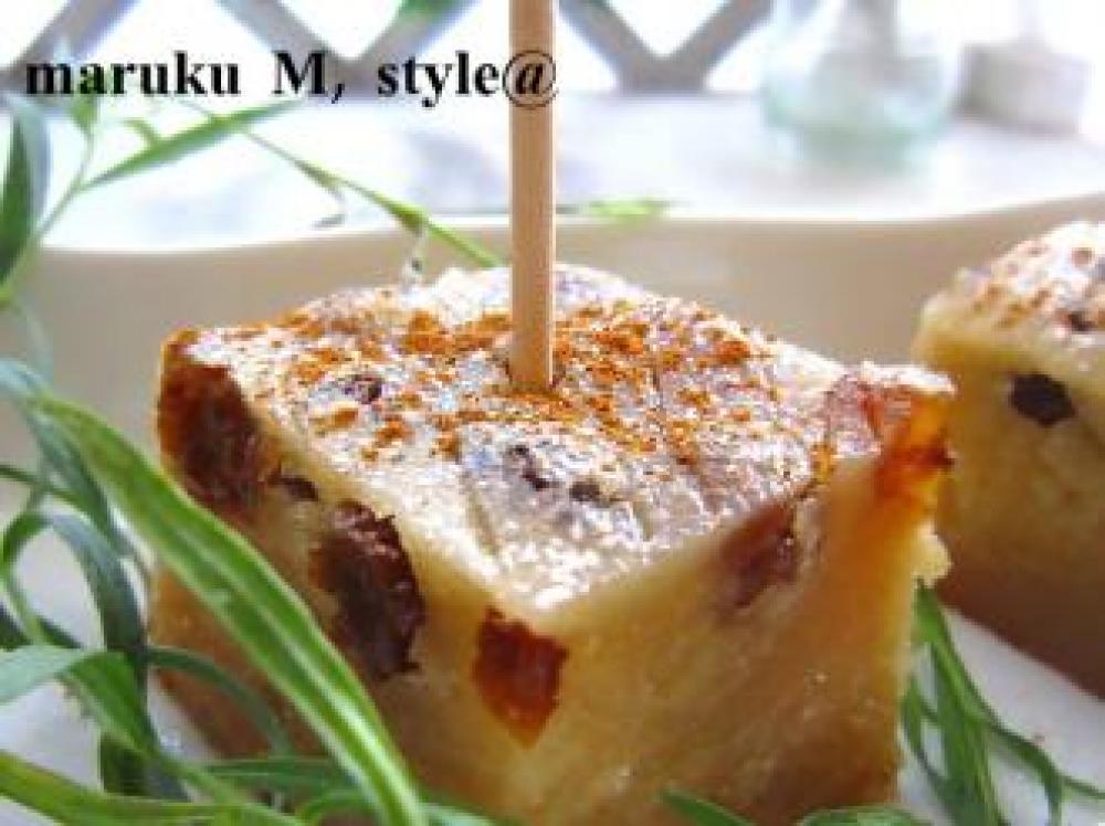 ![]() 上からシナモンと粉砂糖を少しかけると、和菓子のような洋風のような・・。