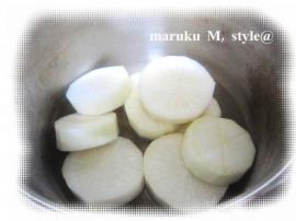 ![]() 大根は隠し包丁入れて下茹でします!私は圧力鍋で、圧力がかかれば2分!