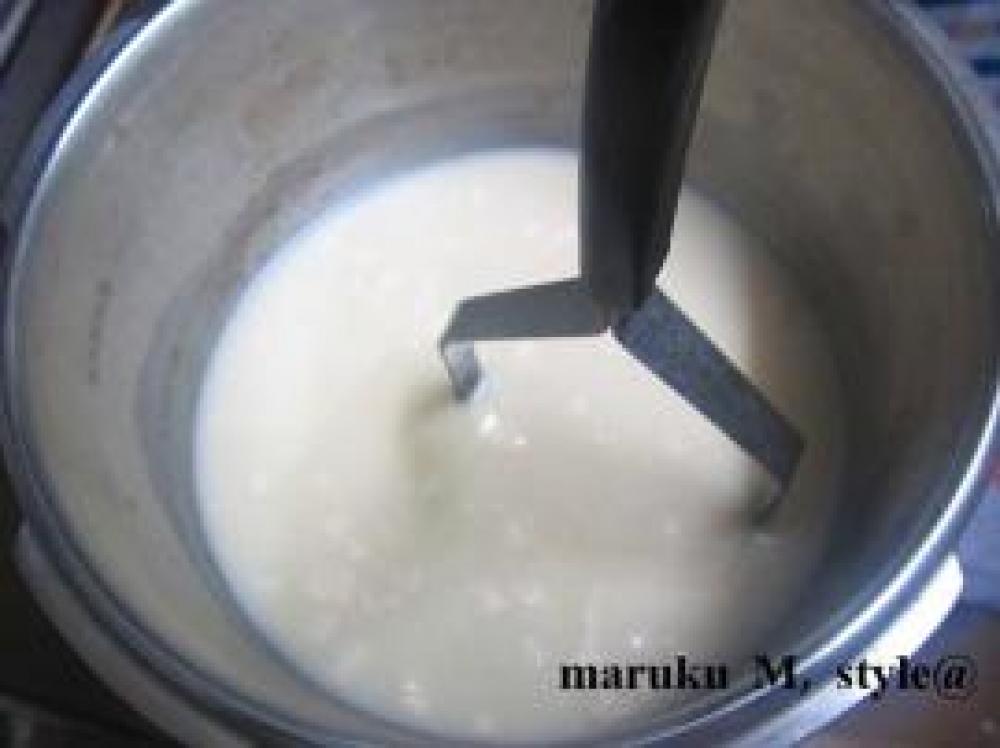 ![]() お鍋に★を入れてあっためます。その中へ粕を入れて溶かします!私はマッシャーを使います!