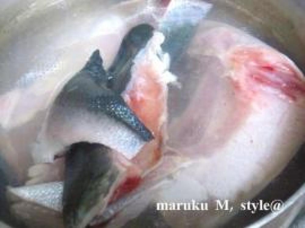 ![]() ぶりは(今回はブリかま2切れと切り身のブリ2切れを使いました)熱湯でサッと霜降りします!