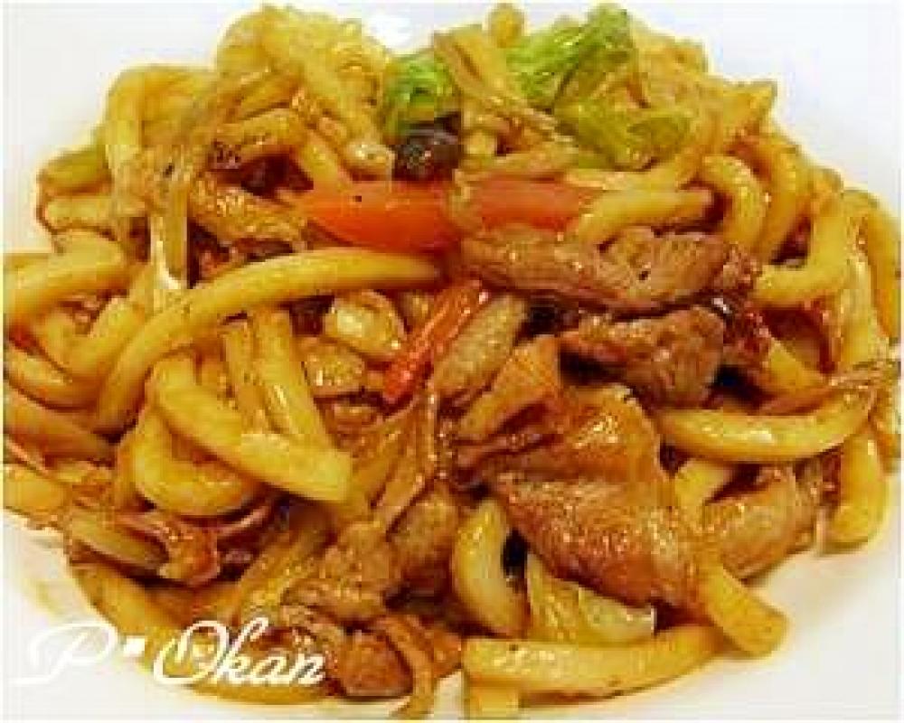 人参、キャベツも入れて調味料すべてを入れ、うどんま入れて炒めたら出来上がり。