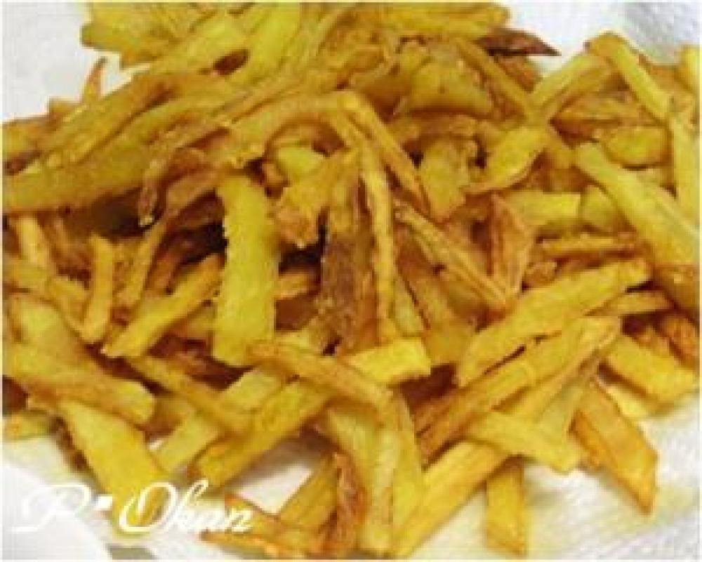 中温に熱した油で2を揚げ、塩を振ったら出来上がり。