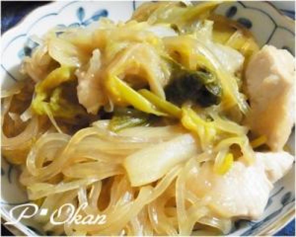 鍋に水を入れて沸騰したら鶏肉、白菜を入れて少し煮込み、調味料、糸コンも入れて良く煮込んだら出来上がり♪