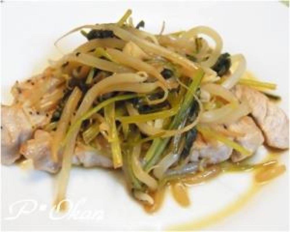 フライパンに油をひいて熱し、1のロース肉を焼く。焼けたら1度取り出す。