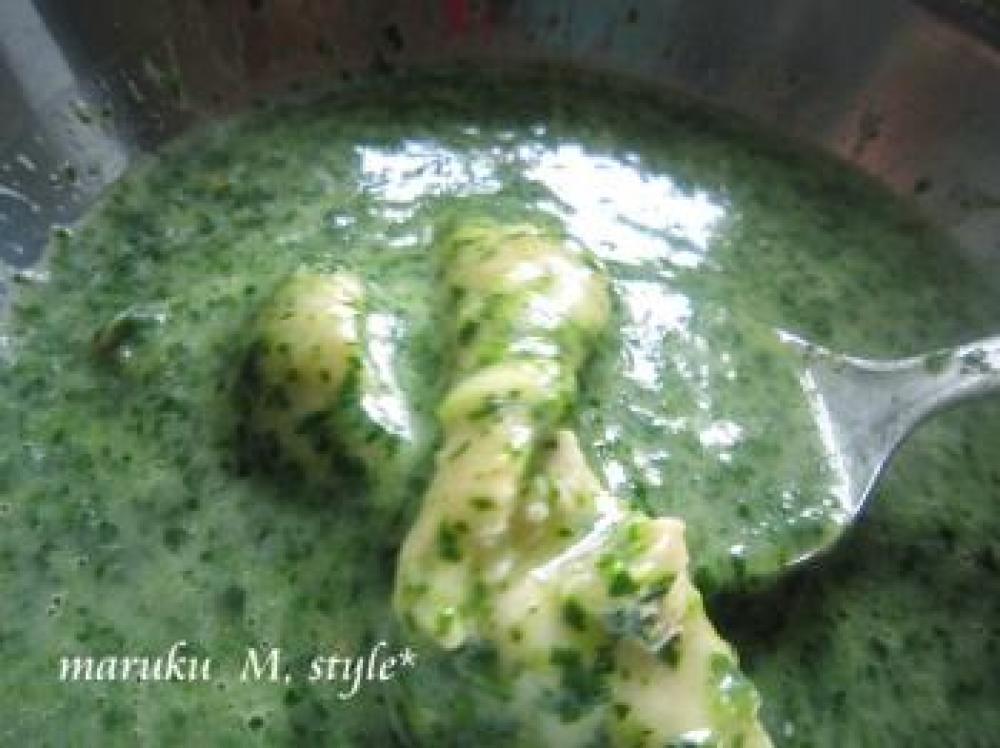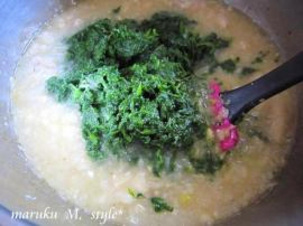 ![]() ほうれん草はそのまま煮込む場合が多いと思います!綺麗な緑をそのまま活かしたかったので 最後に入れました!
