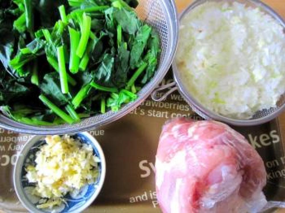 ![]() ほうれん草は適宜にカットしてさっとお湯であく抜きをしておきます。生姜・ニンニクはミジン切り!