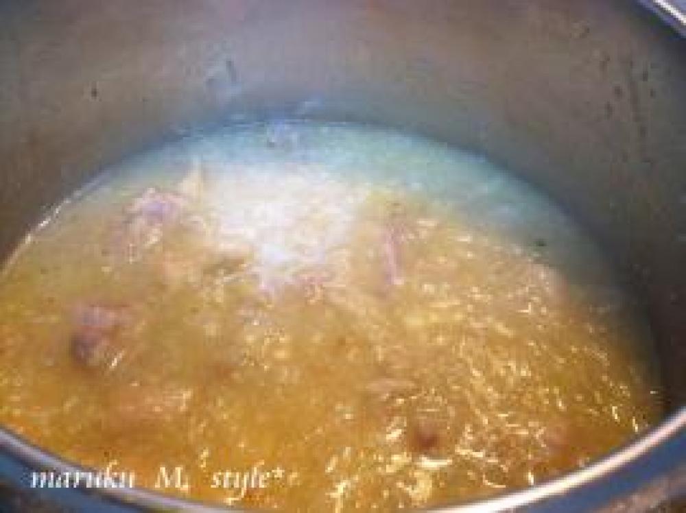 水を500cc入れて鶏がらスープの素を入れて圧力鍋で中に火を通します。そのままことこと炊いても・・・・。