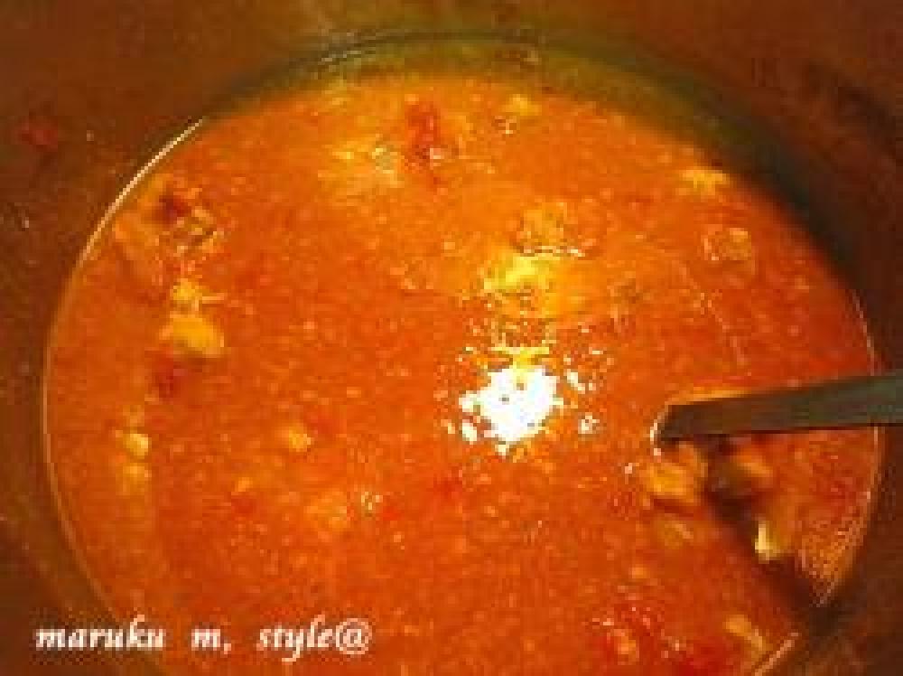 ![]() 少し炒めて?それを圧力鍋にうつし、固形スープの素1個とトマト缶1杯分の水を入れます!