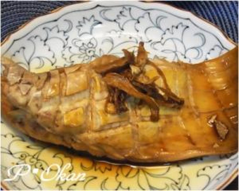1の鍋に生姜、調味料を入れ、エイを入れる。
