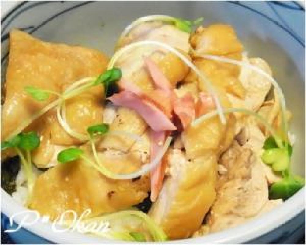 表面が焼けたら一旦取り出し、水以外の調味料を煮立て、もも肉を入れて煮込む。