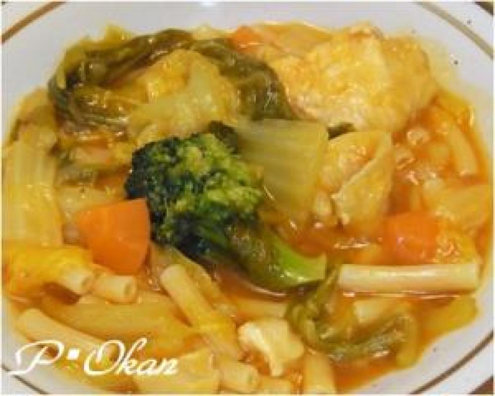 3の鍋にマカロニ以外の材料をすべて入れて煮込み、最後にマカロニを入れて少し煮込んだら出来上がり♪