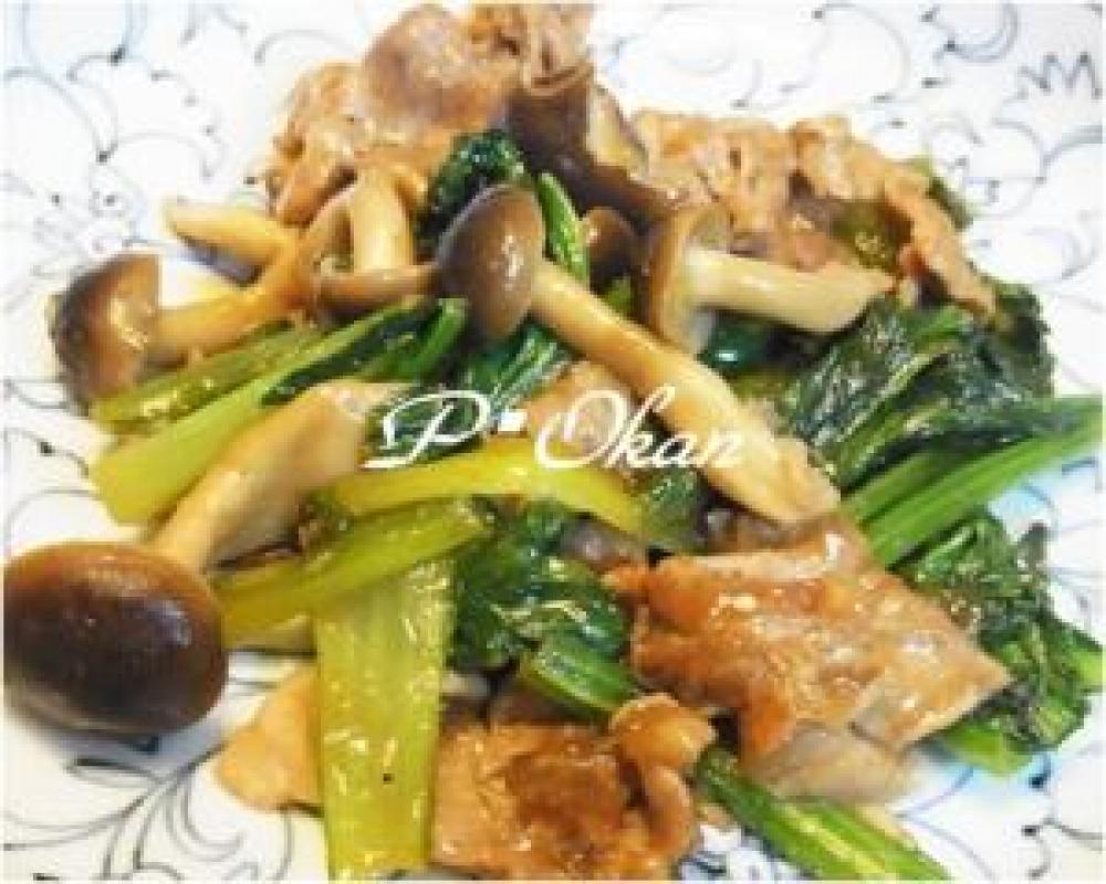 調味料も入れて最後にシメジを入れてさっと炒めたら出来上がり。