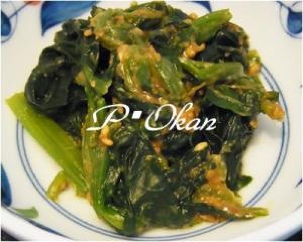 軽く水気を絞ったホウレンソウに1に調味料を混ぜたら出来上がり。