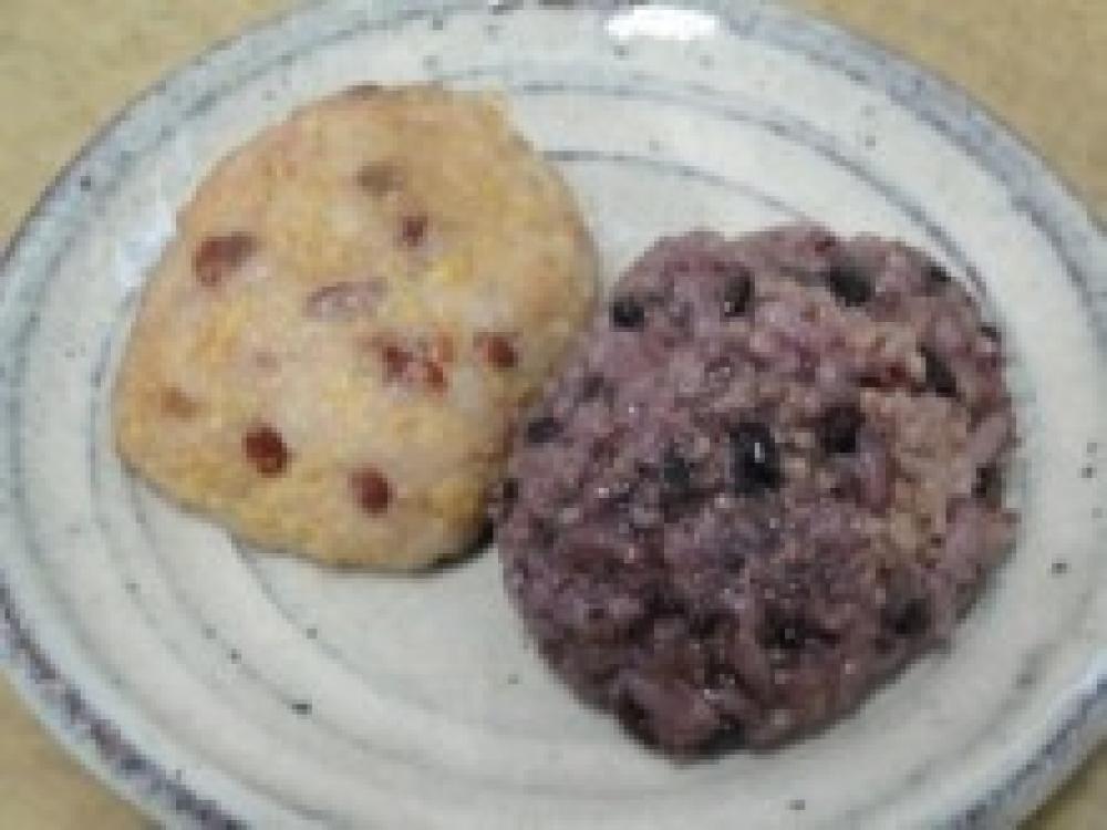 2の雑穀ごはんに砂糖を加え、すり鉢などで粗くつぶして8等分にわけておきます
