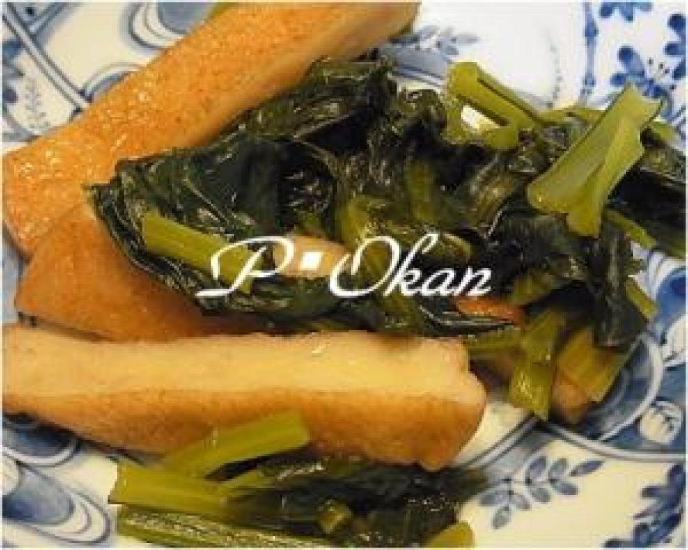 丸天は1cm幅に切る。小松菜は4cm位に切る。