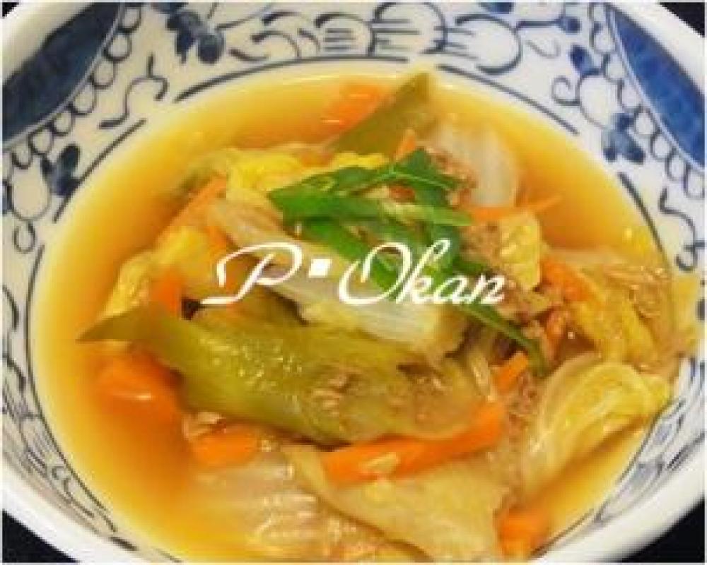 鍋に水を入れて沸騰させ、1とツナ缶、調味料を入れて煮込んだら出来がり♪