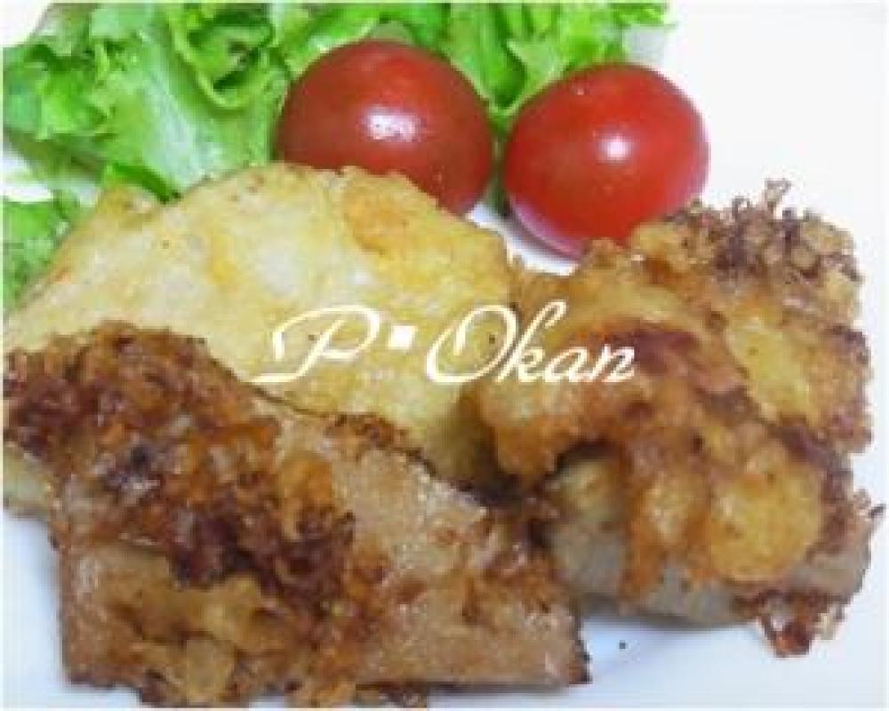 タケノコを1に入れて衣をつけ中温の油で揚げたら出来上がり。