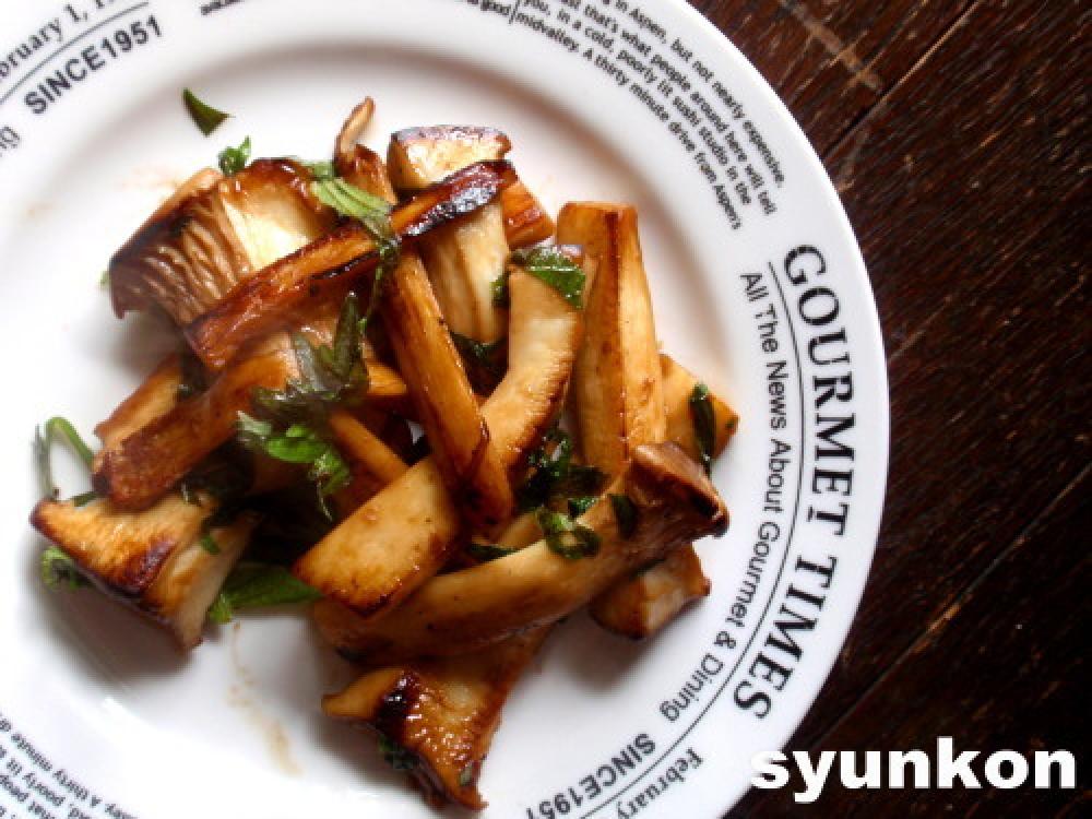 フライパンに油(分量外)を熱してえりんぎとにんにくを炒め、油がまわったら塩をふって酒も加え、