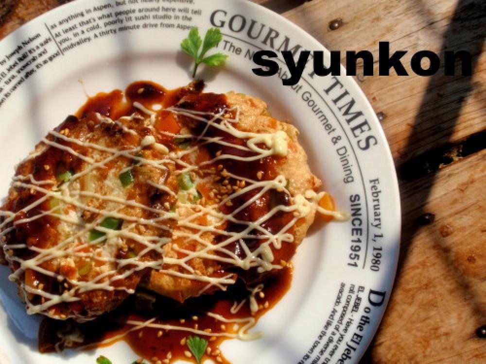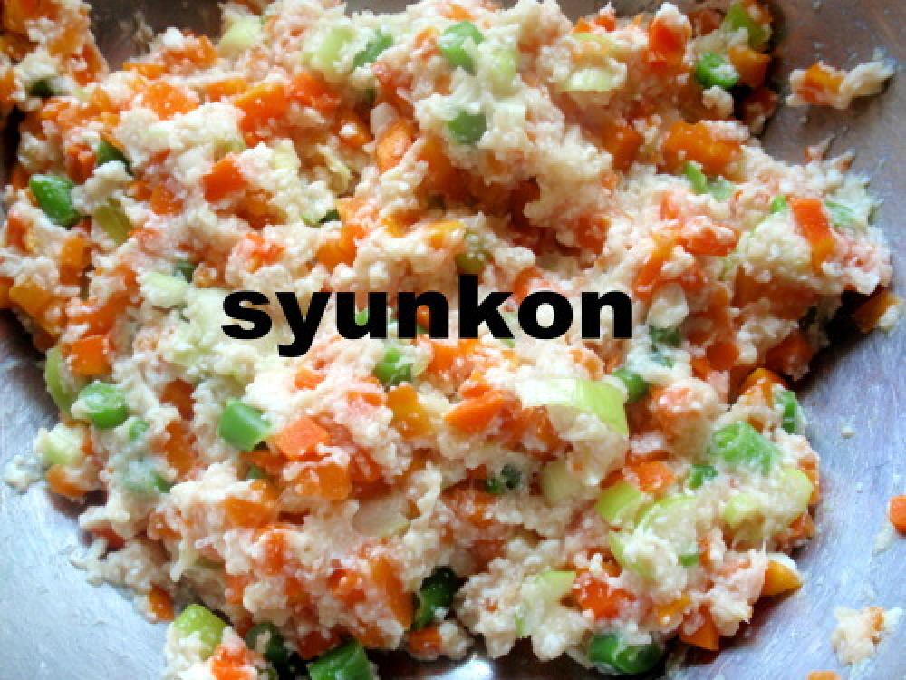 ![]() 豆腐と愉快な野菜たちを混ぜ、しょうゆも混ぜ、まるめる。