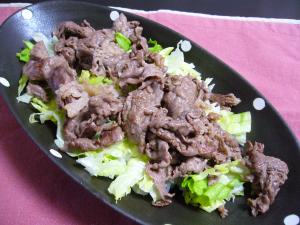 焼肉のタレをかけて、おこのみでわさびを混ぜながらいただきます(^-^)