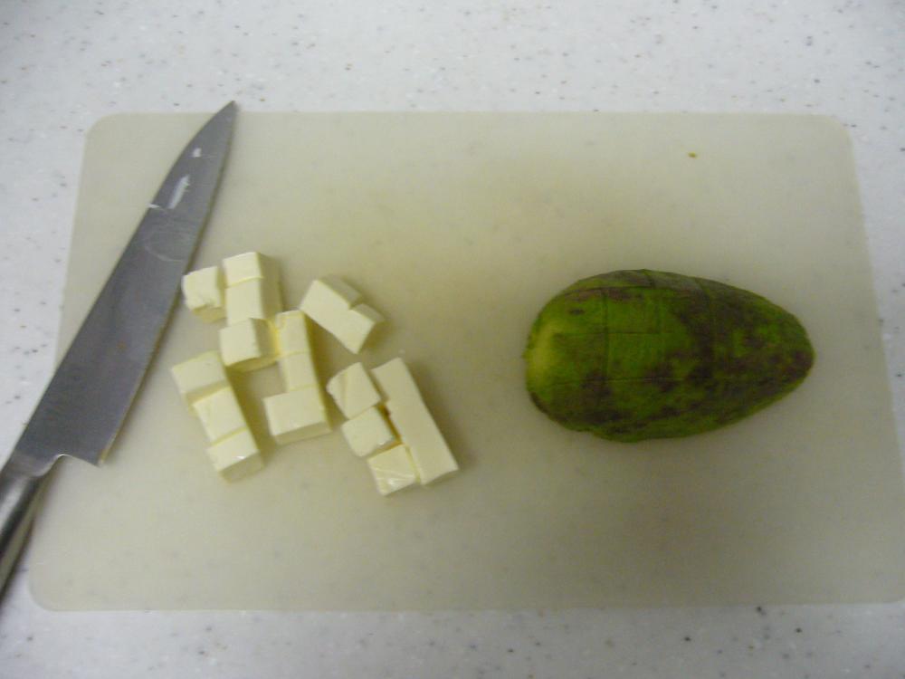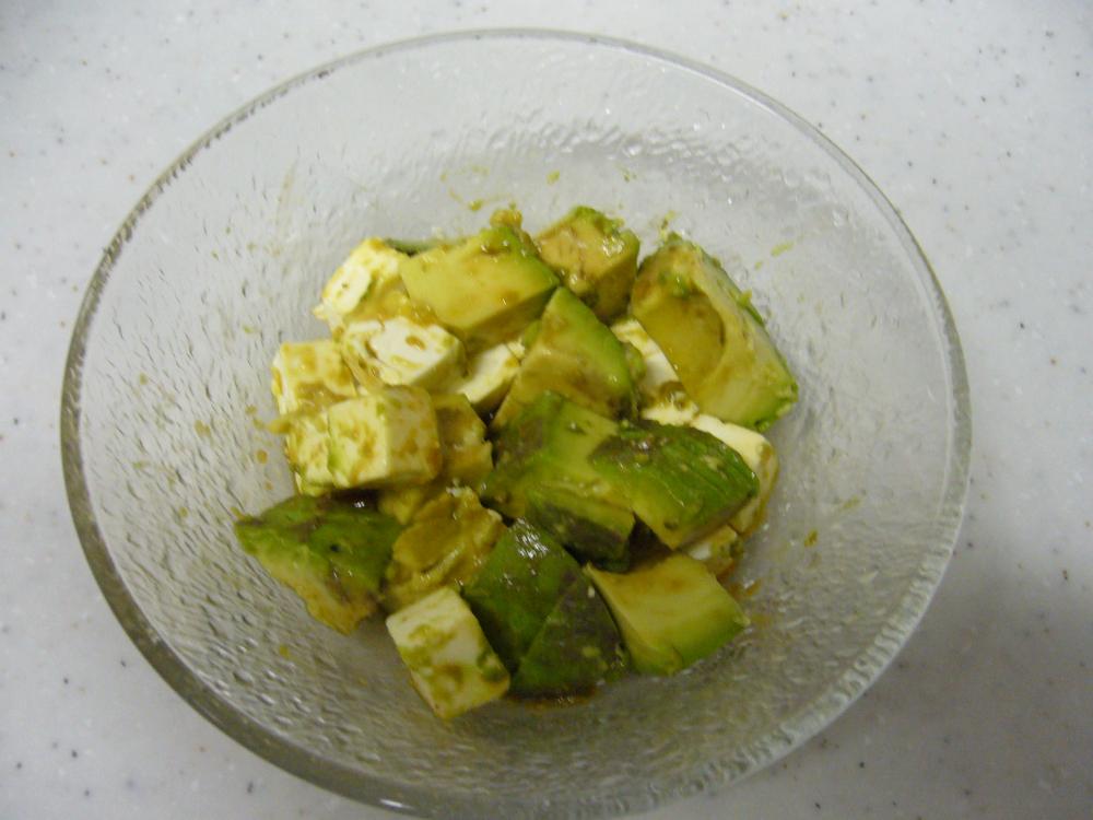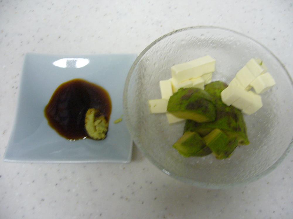 ![]() アボガドとチーズはサイコロ大に切る