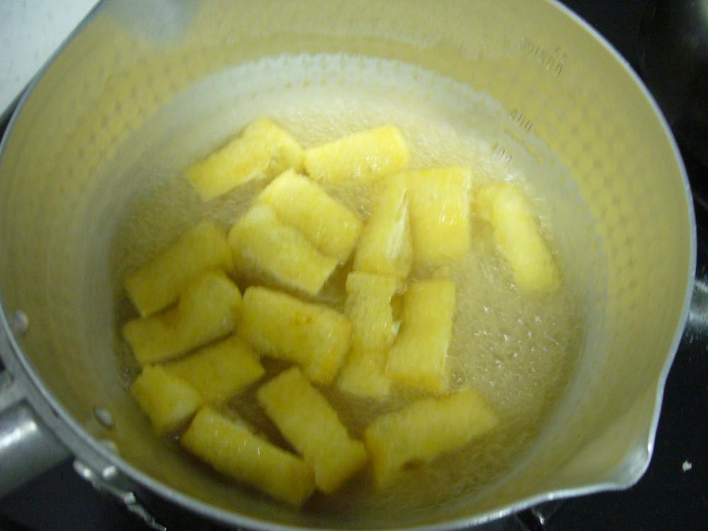 ![]() 手鍋にAを入れ、沸騰したら油揚げを入れる。