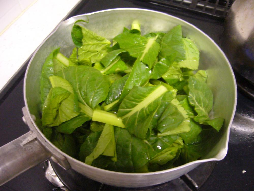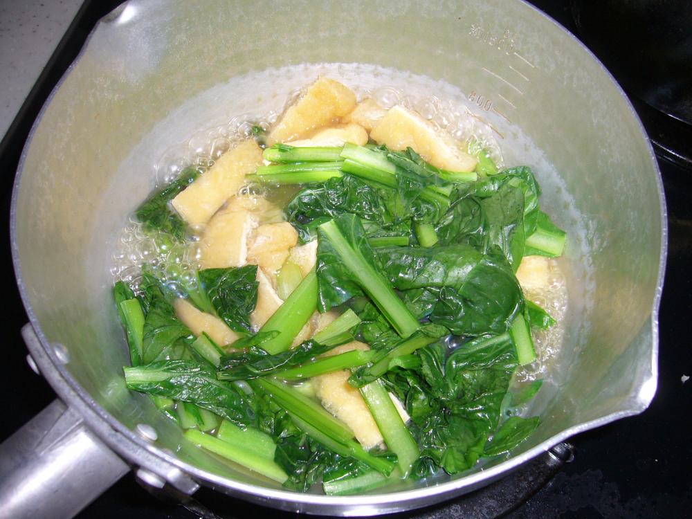![]() ①に小松菜をいれて、さっと煮る。