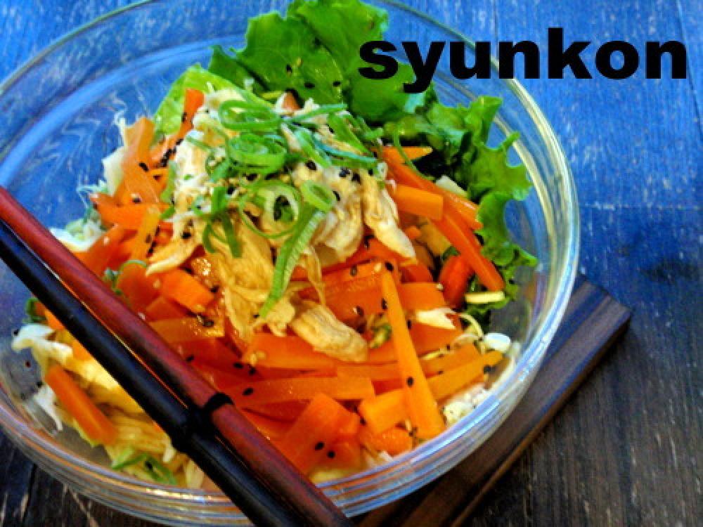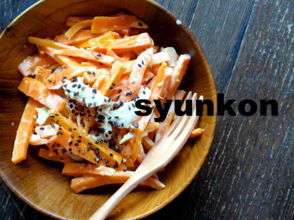 にんじんを細切りにし、お皿に入れ、サラダ油をちょいかけてラップをし、レンジに3~5分ぐらいかける。
