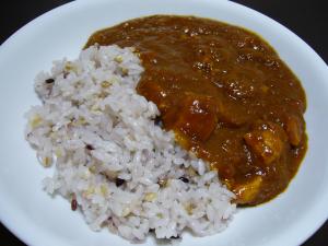 塩・こしょうで味を整える。 お皿にごはんをもり、カレーをかけて完成。 |