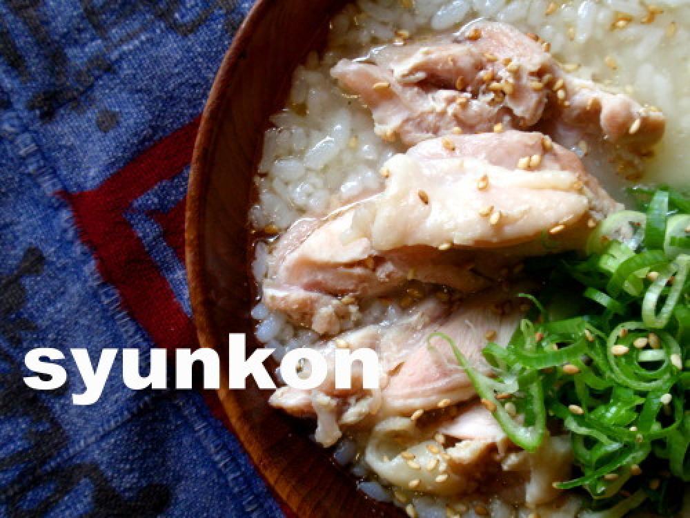 鶏に火が通ったら取り出して、味を見て塩を足し、ご飯を入れ強火で煮て一瞬ぶくぶくわっしゃ~!てなったら火を止める。