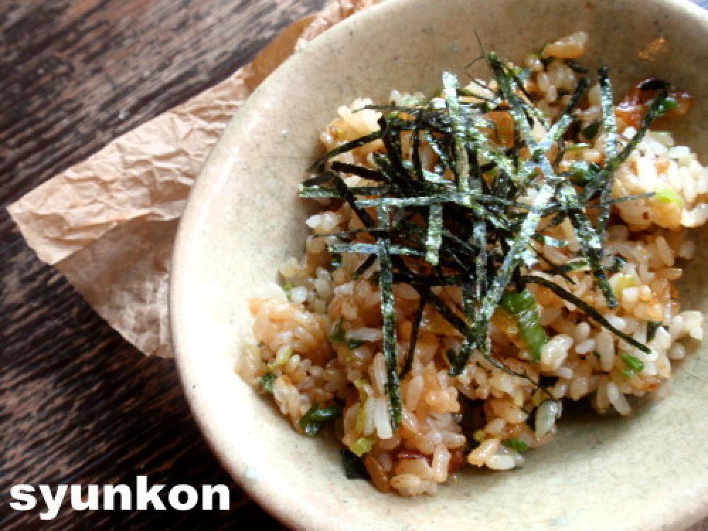 ![]() 塩を加え、最後に醤油を鍋肌にちゃーっと回しかけちょっとそのままにして焦がし、混ぜ合わせるんだニャー。
