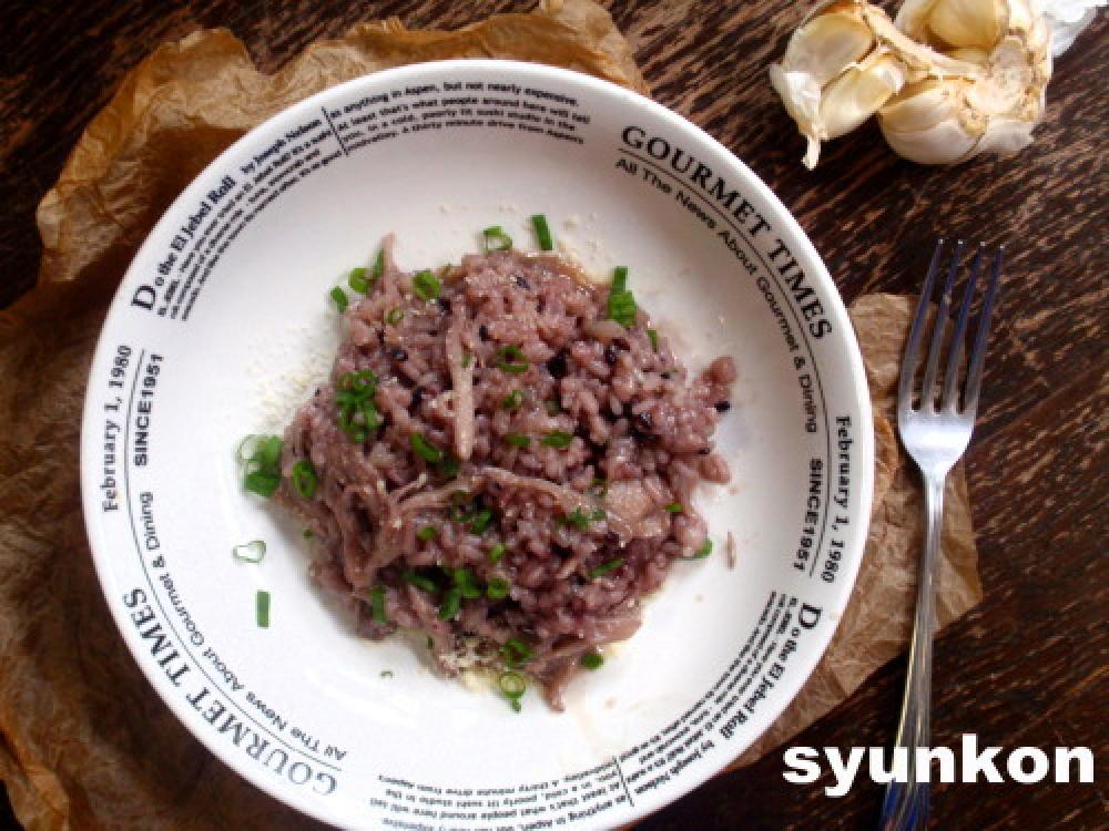 取り出して、Bを混ぜて、青いもんを散らして完成。