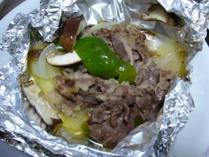 アルミホイルに材料を全部のせて、塩・こしょう・バターとともに包む。