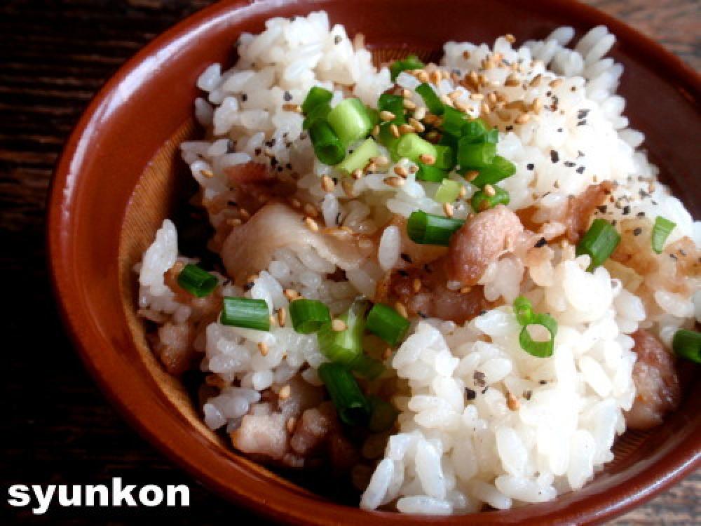 ごはんに油ごと混ぜ込んで、味見をして、薄かったら塩を足し、濃かったらご飯を足し、
