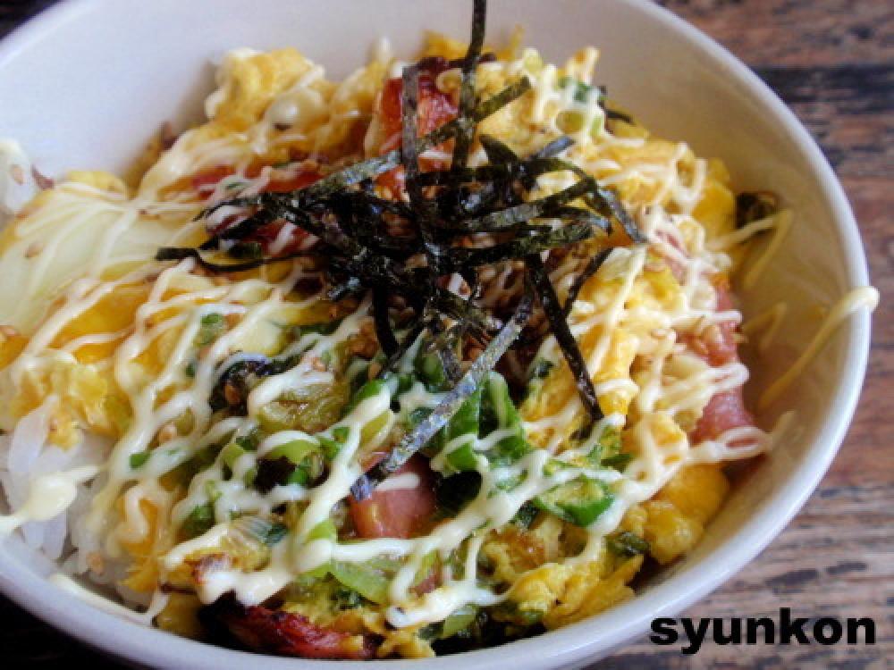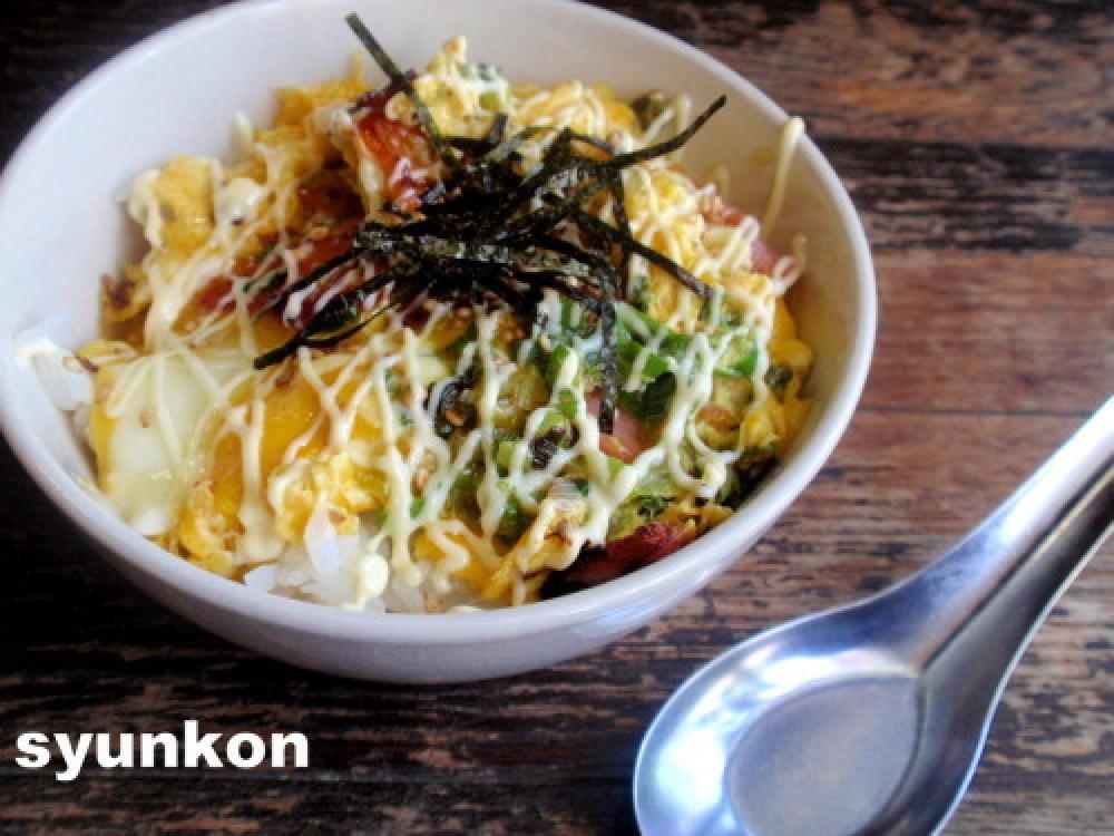 卵を溶いてAを混ぜ、今のフライパンにじゅわーと注いで菜ばしで大きく混ぜ、とろとろになったらご飯にのせる。
