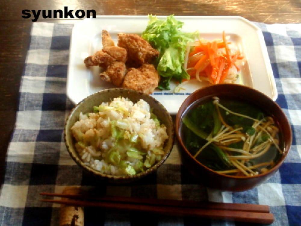キャベツはでかめのみじん切りにする。フライパンに油(分量外)をしいて炒め、塩を入れ、