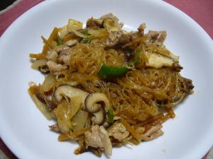 野菜に火が通ったら、はるさめと①のたれを加えて、全体を炒め合わせる。