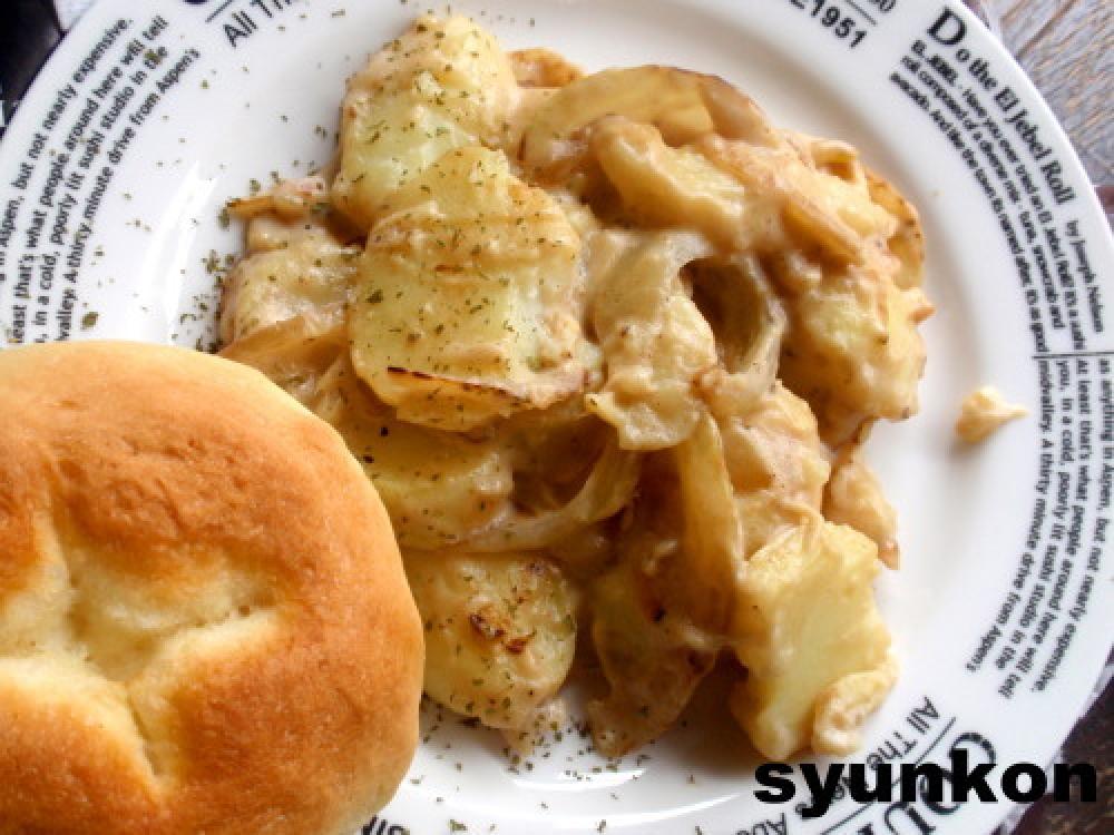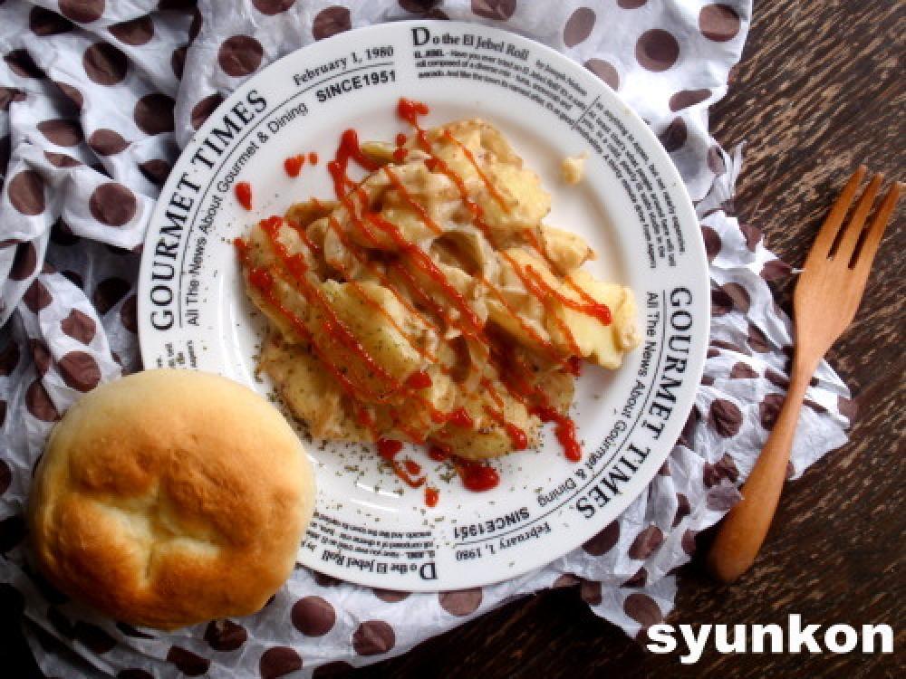 じゃがいもは洗ってラップをし、レンジに6分ほどかけるか、茹でるかして輪切りにする(笑)←どこで笑うねん