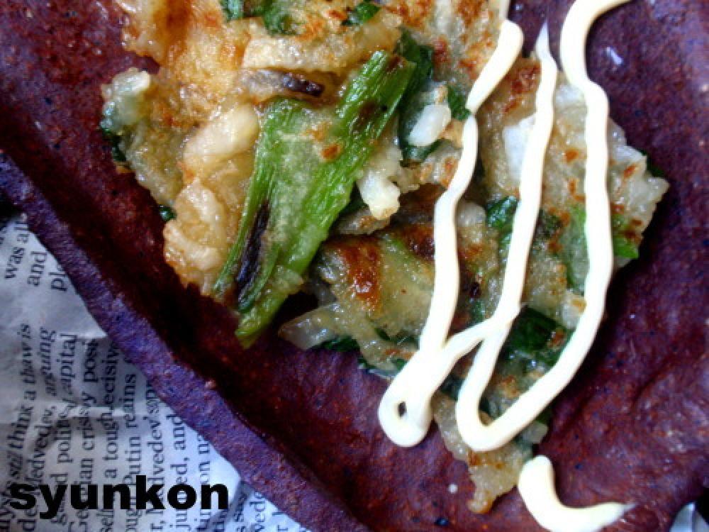 フライパンにゴマ油(できれば。サラダ油でも可)をしいて熱し、生地を流しいれて薄く広げる。