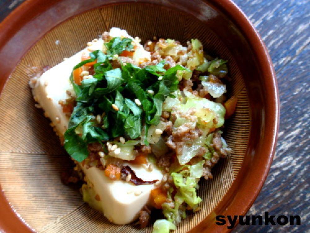 ![]() 大葉とともに豆腐に乗っけました。