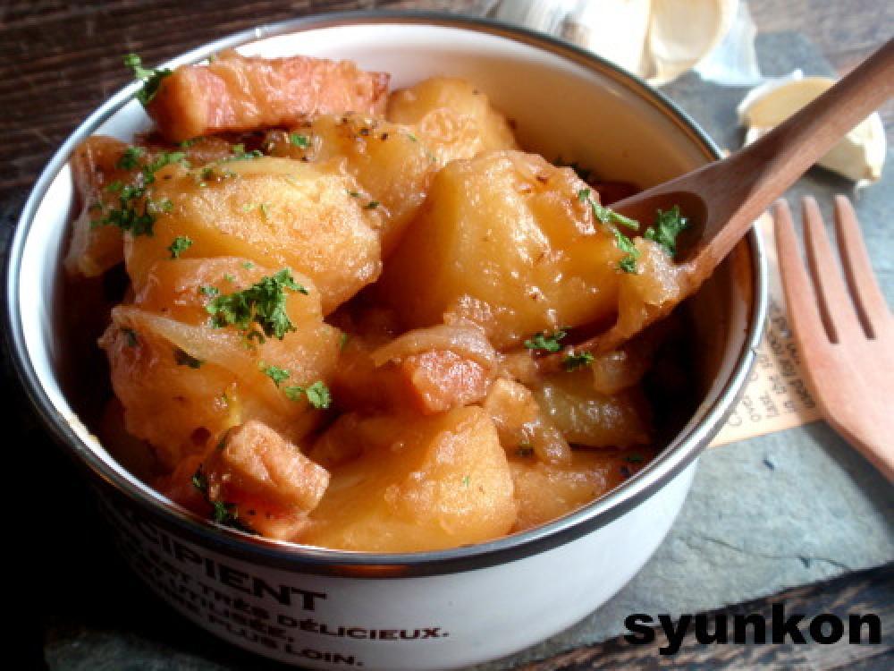 カリッとしてきたら玉ねぎとじゃがいも、にんにくも炒める。